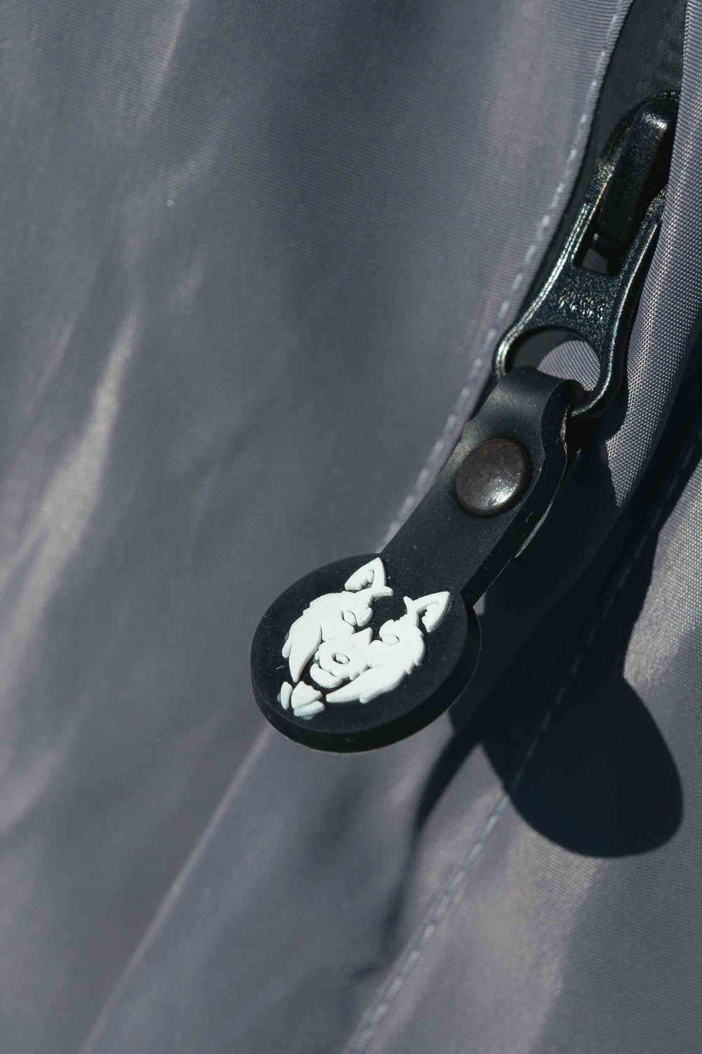 Side profile of the stone grey sauna jacket highlighting polyester-nylon coated exterior designed for heat retention while maintaining comfortable, flexible movement during workouts.