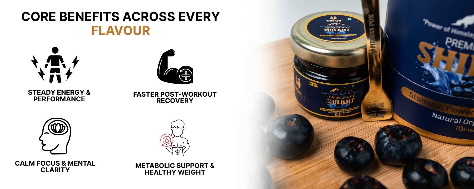 Experience the ultimate combination of health, performance, and flavor with Fitness Fox Shilajit Blueberry!