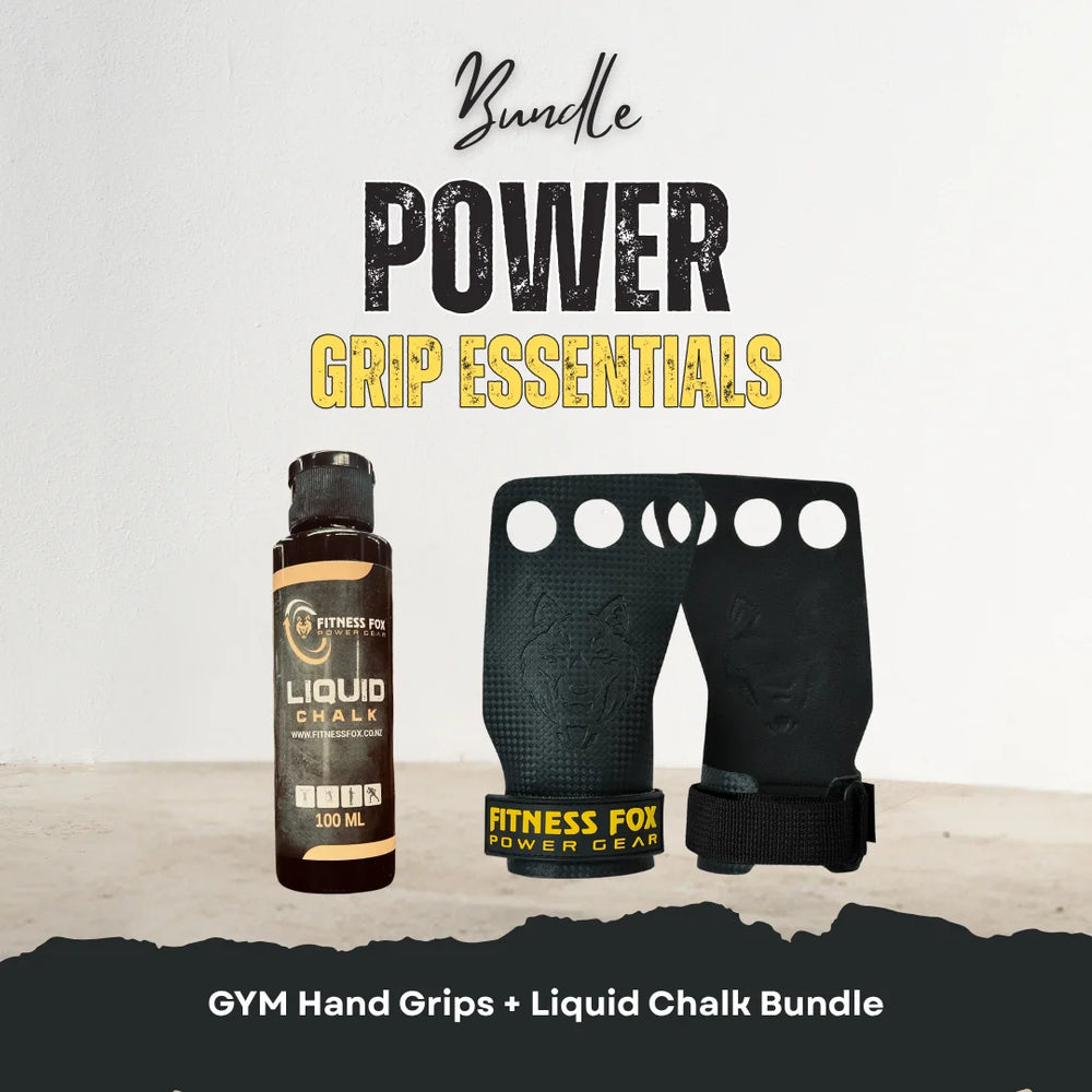 Achieve your best performance with Fitness Fox's GYM Hand Grips + Liquid Chalk Bundle. Perfect for any workout!