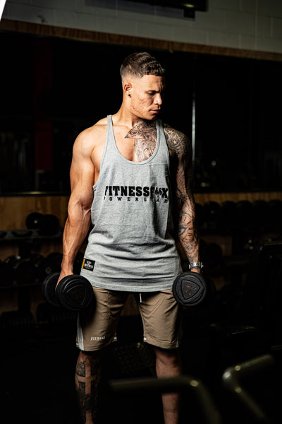 “Back view of Fitness Fox black and grey lifting gloves displaying moisture-managing fabric and ergonomic shaping for comfort on longer gym sessions.”
